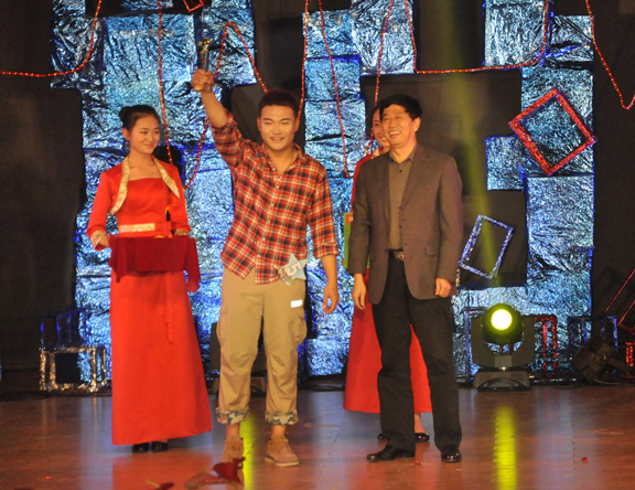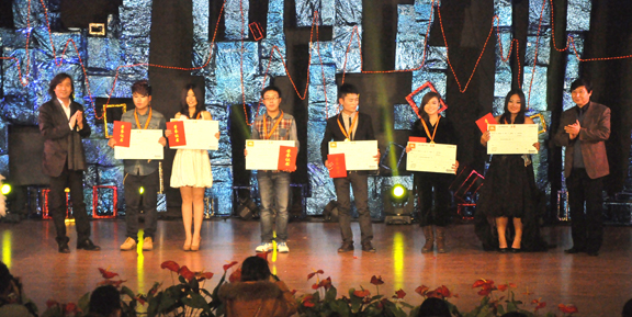 最终王函,彭木,许佳恩、许佳蒙组合凭借更为精彩的表现顺利进入冠亚季军争夺赛。第三轮比赛中王函呈现了深沉动人的《痴心绝对》,将本次比赛气氛带入一轮小高潮;彭木用他富有特征的音韵演唱了一曲《你把我灌醉》,磁性十足的声音展示了其扎实的唱功技巧,博得了满堂喝彩;许佳恩、许佳蒙组合带来歌曲《发呆》展现了良好的姐妹默契,台下观众皆陶醉在两人美妙的歌声中,参赛选手们尽情的展示自己,那优美动听的歌声充分传达了自己的心声。经过评委紧张公平的评分后,冠亚季军脱颖而出,彭木(工业设计学院),许佳恩、许佳蒙组合(视觉传达设计学院),王函(现代手工艺术学院)分别获得冠亚季军,另外,最佳人气奖由李法才获得,其他6位选手分别获得十佳歌手称号。至此,第九届“火焰杯”校园十佳歌手大赛圆满落幕。