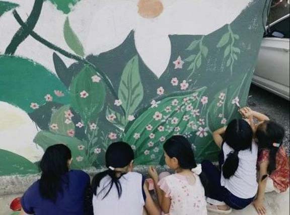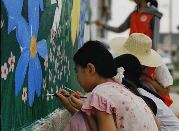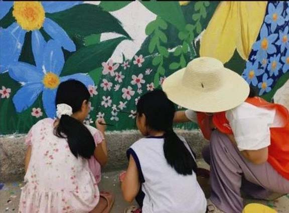 除了画笔,志愿者们还带着一颗真心走进乡村。看到村里的孩子们对墙绘好奇,他们便开展了“小小画师”体验活动,教孩子们用五彩画笔,描绘眼中的家乡。活动中,志愿者们陪着孩子一起调色、构图,听他们讲自己的故事,引导他们发现家乡之美。没有复杂的手工、喧闹的运动会,单纯以绘画为桥梁,让乡土文化在孩子们的创作中沉淀,让家国情怀在他们心底悄然萌芽,助力乡土记忆代代传承,这正是艺术赋能乡村文化建设、强化乡村内心认同的生动实践。