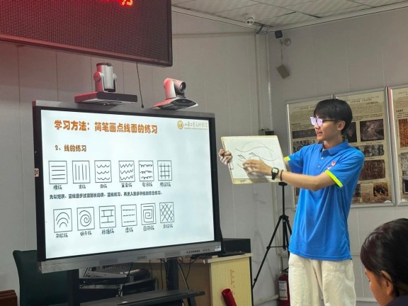 欢迎仪式后,支教课程在团结路社区和希望学校正式拉开帷幕。第一堂课为普通话课,通过生动的语言引导孩子们感受普通话的魅力,助力提升表达能力;紧接着,带来简笔画教学,从基础线条到创意造型,耐心指导孩子们用画笔描绘心中世界,课程结束后,一场热闹的作业展示与合影留念,定格下孩子们的自豪与喜悦;折纸课带领孩子们走进传统手工艺的天地,从折纸技巧到图案寓意,手把手教学让一张张彩纸蜕变为精美作品,让孩子们在实践中感受文化之美。目前,团队已开展了包括普通话、简笔画、剪纸等特色课程,接下来,志愿者们将结合岳普湖县的需求开展非遗柳编、扎染、水拓丝巾等更多元的课程。