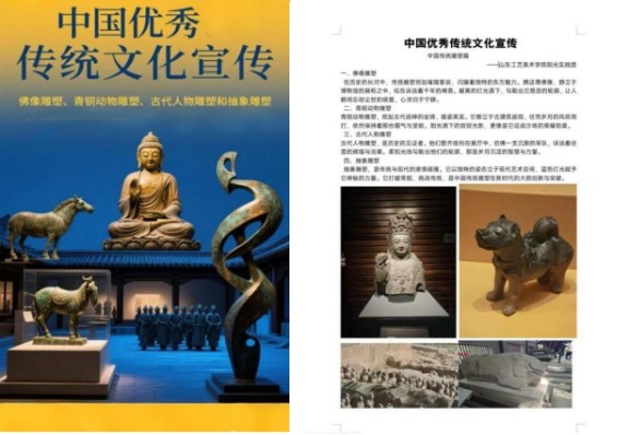 为深入贯彻习近平总书记关于志愿服务的重要指示精神,传承和弘扬中华优秀传统文化,增强当代大学生的文化自信,造型艺术学院阳光实践团积极响应学校号召,在指导教师朱员老师的指导下于7月17日至18日在山东省济南市长区常春藤社区组织开展了本次宣传中国优秀传统雕塑的社会实践活动。