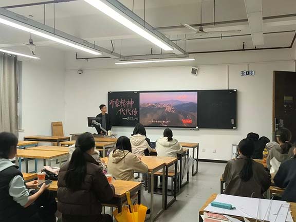 随后,同学们共同观看了影片《沂蒙精神》。当影片在大屏幕上铺开,鲜活的历史画面瞬间将大家带入战火纷飞的年代:无论是推着军粮、扛着炮弹,在枪林弹雨中为前线送去希望;还是在后方默默守护,照料伤员、抚育烈士遗孤,沂蒙人民都以看似柔弱的身躯,为革命撑起了一片坚不可摧的大后方。同学们目不转睛盯着屏幕,眼中满是对先辈的敬佩与感动。