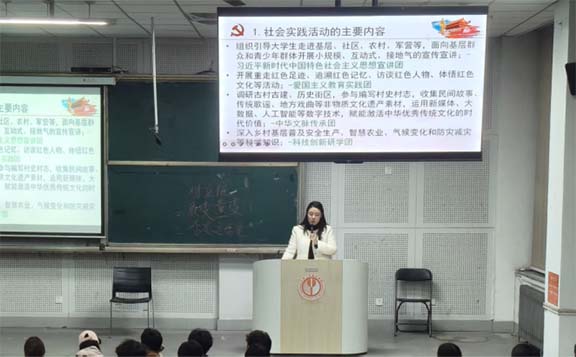 团课期间,朱员老师还从团员教育评议、五四评优、入党流程等方面带领新生了解推优入党、评奖评优的基本要求。希望同学们稳扎稳打,让每一份个人奋斗都与党和人民的伟大事业同向而行,在集体的荣光中实现自我价值。随后,朱员老师深入浅出地讲解了大学生暑期“三下乡”社会实践活动、第二课堂及学业课程相关要求。朱员老师积极动员同学们投身社会实践,鼓励大家在实践中积攒成长的养分。同学们纷纷表示,会积极将专业知识与生活实际相结合,以实际行动践行使命。