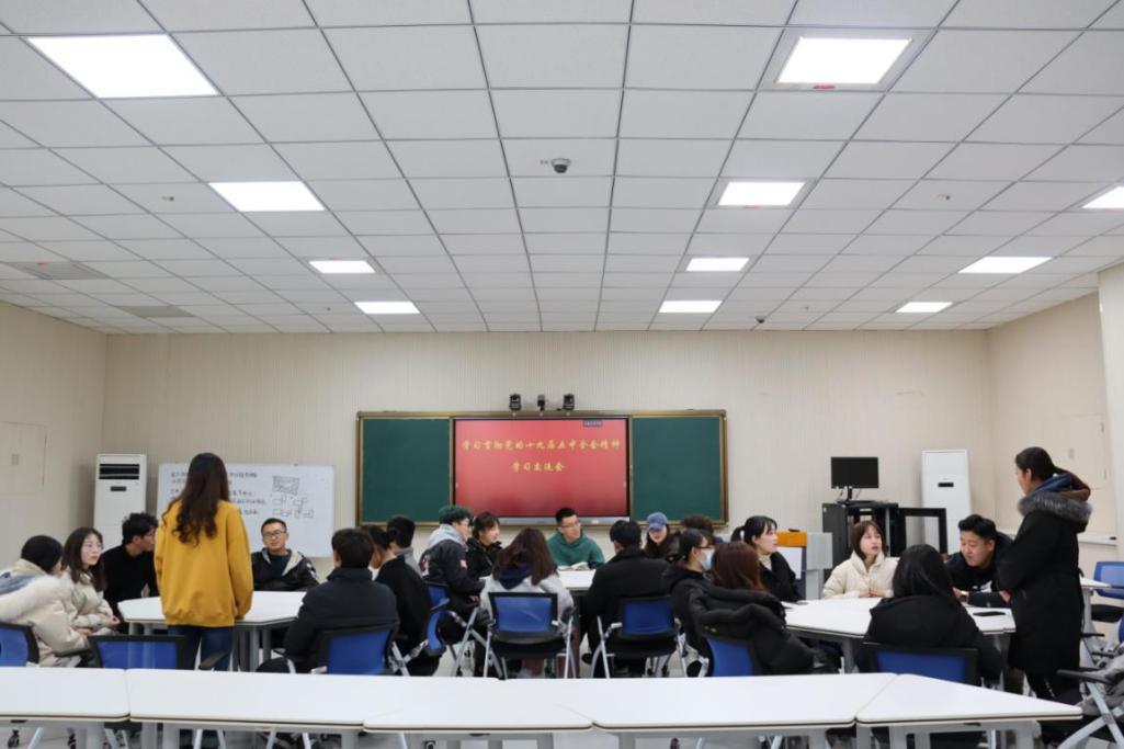 11月24日,建筑与景观设计学院团总支为贯彻学习十九届五中全会精神,于智慧教室积极开展学习交流会。辅导员陈铁、田亚洲、团员干部与团员代表共30余人共同参加了本次学习交流会。