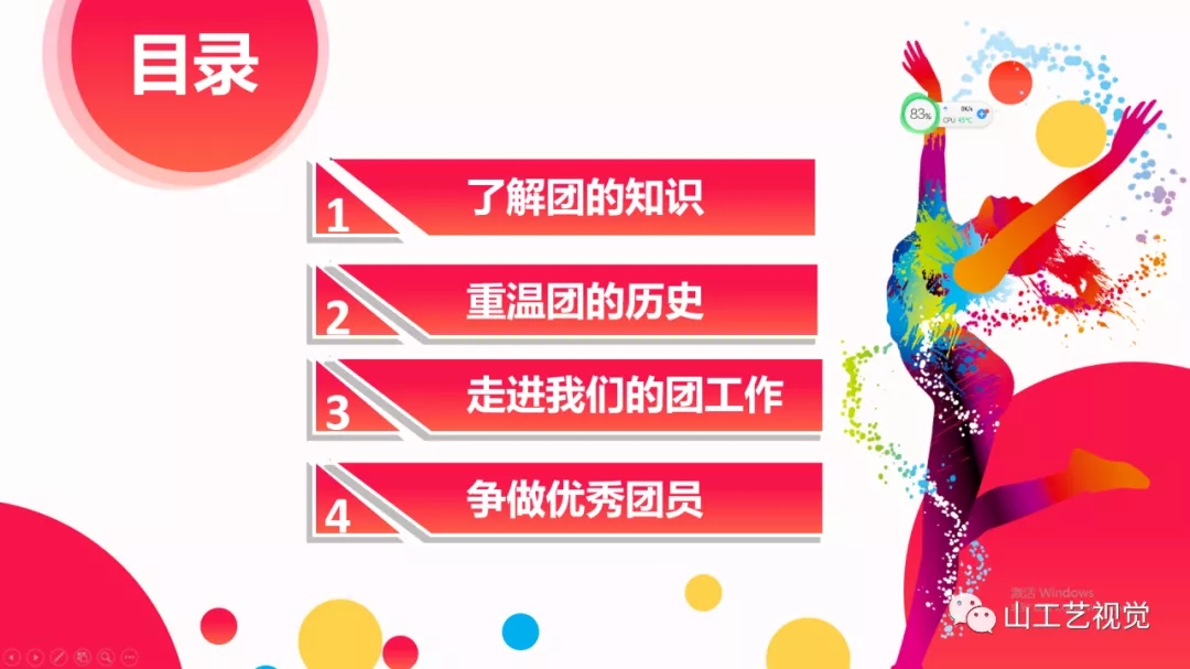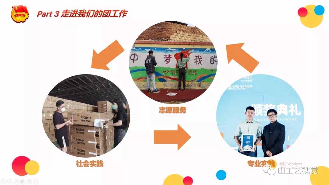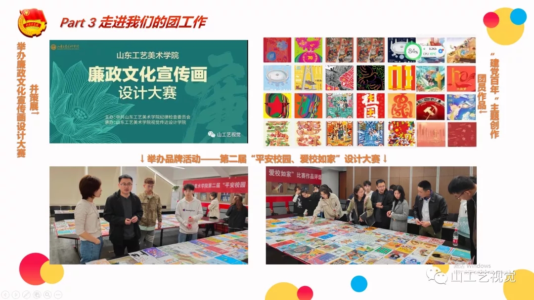 结合学院团总支工作,老师向大家展示了我院青年、团员在团的建设、志愿服务、社会实践、文体活动等方面取得的成绩。
