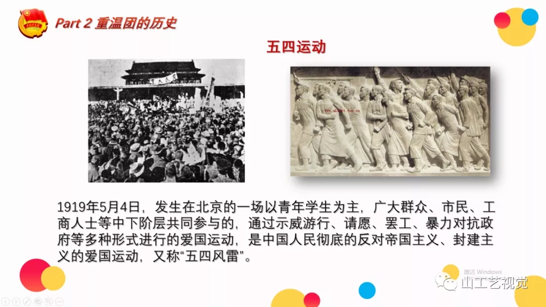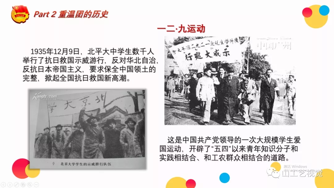 此后,老师与大家简单回顾了共青团的历史,介绍了共青团发展的三个阶段和“五四运动”、“一二九运动”两个重大历史事件及其深远影响。