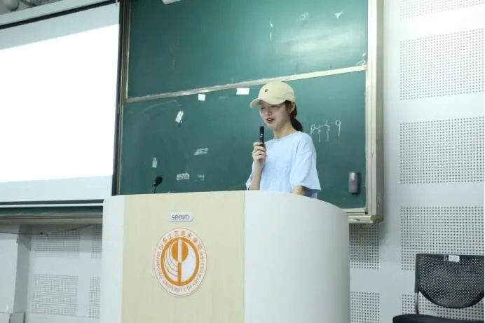 首先由工业设计学院团总支委员尘诺给2021级新生讲解“第二课堂成绩单”学习内容。尘诺同学从四个模块详细解说什么是第二课堂,过程中同学们认真听讲做笔记。