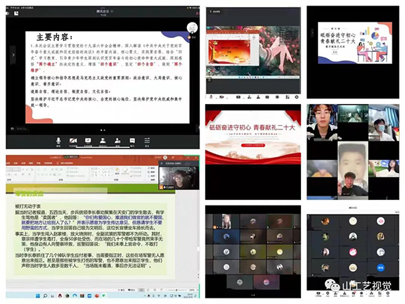 2022 年是党的二十大召开之年,是中国共产主义青年团建团 100 周年。为深入学习贯彻党的十九大和十九届历次全会精神,贯彻落实习近平总书记关于青年工作的重要思想,持续巩固深化拓展党史学习教育成果,教育引导广大团员青年坚定不移听党话、跟党走,庆祝建团 100 周年,以奋发向上的精神状态迎接党的二十大胜利召开。3月21日至4月10日间,视觉传达设计学院团总支、各团支部以线上形式开展“砥砺奋进守初心 青春献礼二十大”团队第一课。