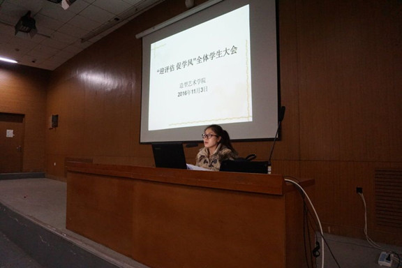 11月3日,造型艺术学院在阶梯教室开展了“迎评估 促学风”全体学生大会。本次会议由辅导员王晓琼老师主持,由全体学生参加。