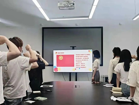百年芳华,青春万岁。在五四青年节到来之际,视觉传达设计学院组织2021年度新发展团员开展“重温入团仪式,践行青年初心”青年节主题活动,共话入团一年的进步和收获。2021年度新发展团员、团干部代表、毕业生团员代表参加了此次活动。