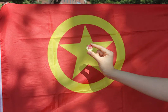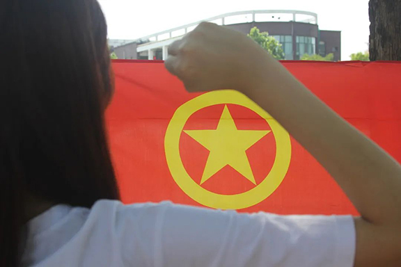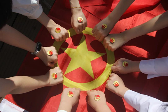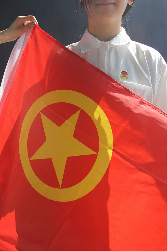 团员青年与团旗团徽合个影,