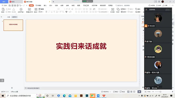实践分享过程中,同学们通过PPT展演及现场分享等形式,从实践活动开展的目的、意义、过程、特色亮点、成效、个人收获和体会等方面做了重点介绍。