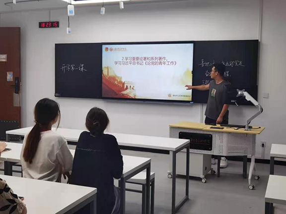 各团支部结合工作实际,以“开学第一课”的方式,采取多种形式,面向全体学生全覆盖式开展。团课内容主要分为三个板块:一是深学细悟习近平总书记在庆祝中国共产主义青年团成立 100 周年大会上的重要讲话精神;二是学习习近平总书记《论党的青年工作》座谈会;三是深入开展国情省情教育。深刻领会习近平总书记对共青团提出的“五个模范,五个带头。”