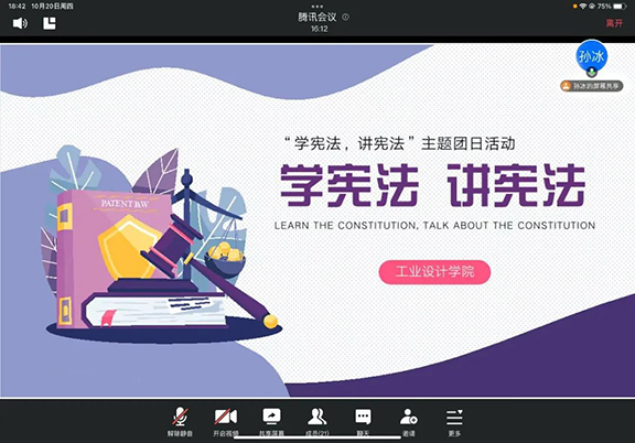 为了进一步增强青年学生的法治观念和法律意识,2022年10月19日工业设计学院团总支组织各团支部开展“学宪法 讲宪法”主题团日活动。