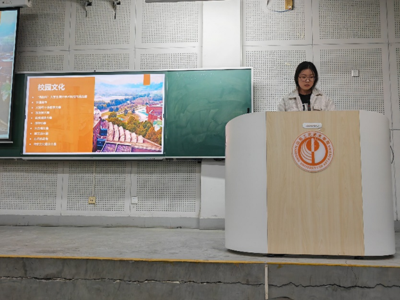 衣欣芮向同学们介绍了创意搭建大赛、“火焰杯”十佳歌手大赛、“手造集市”、美文颂大赛、辩论赛、“挑战杯”等学校举办的各类校园文化活动。这些活动培养了同学们多样的兴趣爱好,增强了同学们团结协作的能力,提高了大家的综合素质。