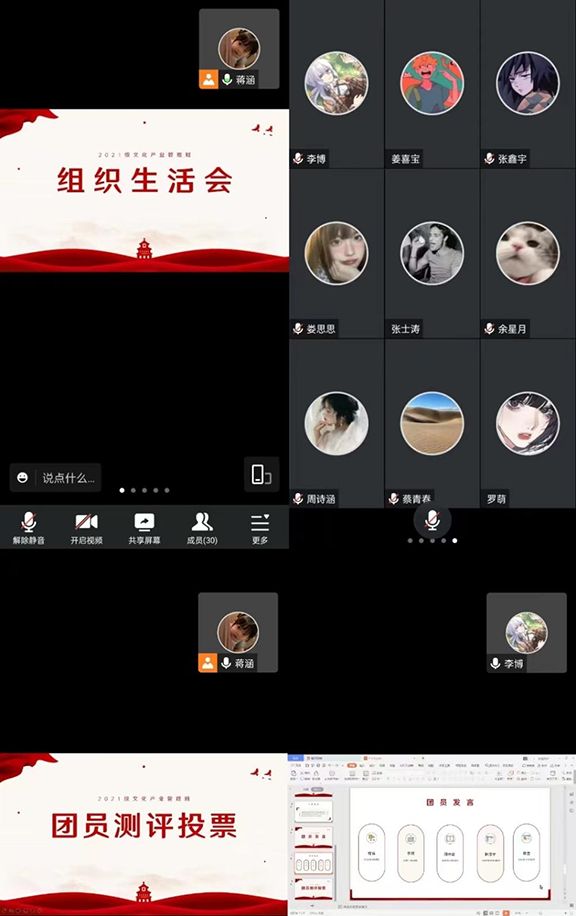为深入学习宣传贯彻党的二十大精神,紧密联系团员思想学习工作实际,教育引导广大团员坚定不移听党话、跟党走,人文艺术学院各团支部于12月2日前通过线上会议召开了“学习二十大,永远跟党走,奋进新征程”专题组织生活会。本次专题组织生活会由各班团支部书记主持,各级辅导员与全体团员参加。