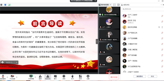 为深入学习贯彻党的二十大精神,深刻理解习近平新时代中国特色社会主义思想。2022年11月29日,工业设计学院团总支于线上组织团支部书记开展学习交流会,共同学习党的二十大精神,交流学习心得,此次学习交流会由团总支副书记李鑫主持,各团支部书记参加。