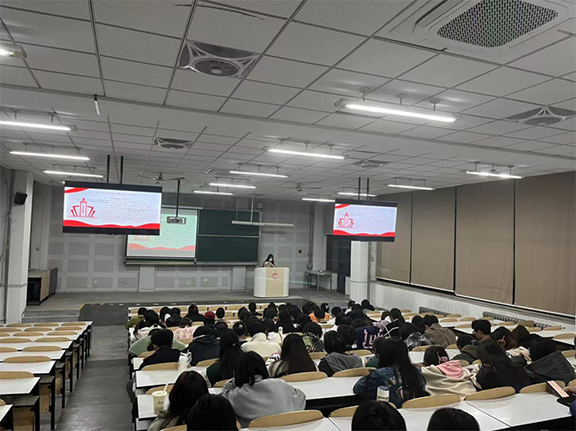 董紫萱宣讲了大学生暑期“三下乡”社会实践、“挑战杯”大学生课外学术科技作品竞赛和大学生创业计划大赛、山东省大学生科技文化艺术节等品牌活动以及其他相关专业比赛,树立同学们实践创新的意识。
