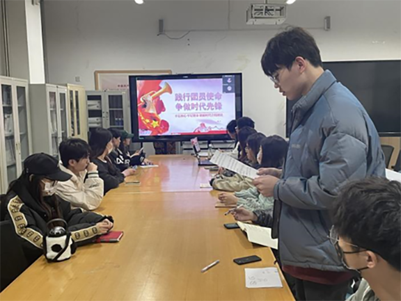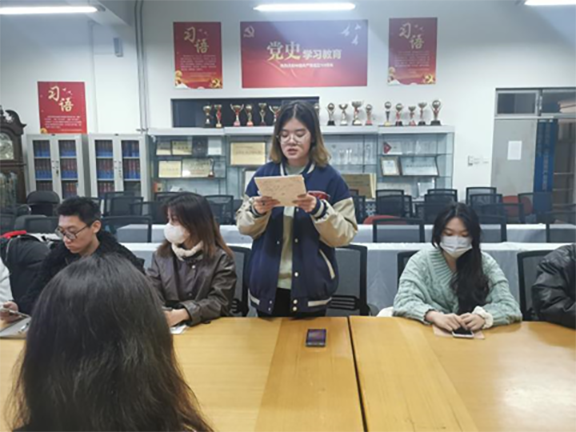 为深入贯彻落实党的二十大精神,激发团员青年爱党、爱国热情,工业设计学院团总支组织新发展团员共同学习二十大有关报告,此次学习由学院团总支副书记李鑫主持。