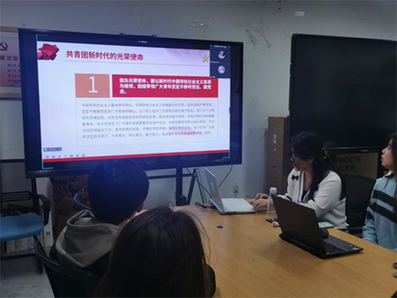 另一位在场的团员说到:“我们要勇开风气之先,身体力行社会主义核心价值观,传承弘扬中华优秀传统文化,积极讲好中国故事,为构筑中国精神、中国价值、中国力量注入生气勃勃的青春动能,彰显追求卓越、浪遏飞舟的时代新风采。”