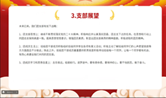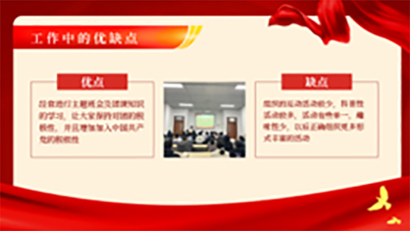 团总支副书记李鑫指出,认真完成基层团支部建设工作,组织开展好各项志愿活动,只是基本工作。本次述职的目的不是为了评星定级,而是为了找到工作不足、明确工作重点,促进和改进团支部的建设;并明确,本次团支部书记述职只是各支部对标定级的参考,学院会从多方面综合考虑和评价各团支部的工作。希望各团支部再接再厉,在下一学年团支部的建设中多多努力,凝聚班级集体的力量,发掘和做好班内积极分子的工作,把学院团支部的工作做得更出色。