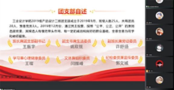 按照年度工作安排,为扎实落实团组织的各项工作,发挥好基层团支部的战斗堡垒作用,12月9日20时,工业设计学院团总支以线上形式,组织召开2022年度团支部对标定级述职会议。团总支副书记李鑫、辅导员周元超、胡小晓、巩正,2019-2021各团支部书记参加此次会议,会议由团总支副书记李鑫主持。