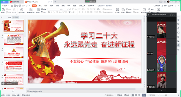 为深入学习宣传贯彻党的二十大精神,紧密联系团员思想学习工作实际,团支书组织各班学习二十大,同学们结合二十大会议主要精神指出自己的不足和未来努力方向,表示作为新时代的青年,要始终听党话、跟党走,学习先辈艰苦奋斗精神,坚定历史信念。