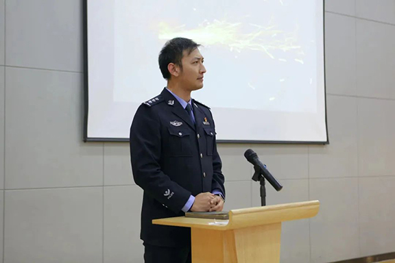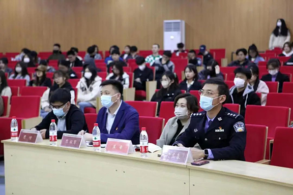 于东豪讲师以“三秒”为题,用王杰战士在生命的最后三秒,牺牲自己保全他人的故事,带同学们领略中国军魂。全国公安系统一级英雄模范张保国同志被意外自燃的炸药烧成重伤形成七级伤残,依然坚守在排爆一线,诠释了一名党员民警生死面前不畏牺牲的奉献与担当,现场学子深受感动。