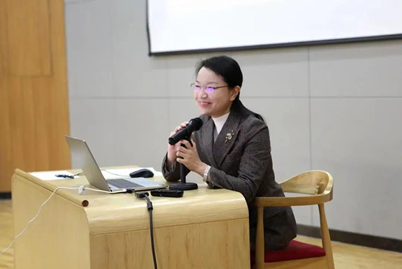 孟娟讲师以“初心的力量”为题,用一个个生动的实例为大家讲述一代代中国共产党人的故事。他们前赴后继、英勇奋斗的根本动力,就是期盼着生活安定祥和,期盼着祖国繁荣昌盛,期盼着中华民族重现辉煌。为天地立心,为生民立命,为历史开新篇。她鼓励每一位在场同学:新时代,年轻学子更应该坚守初心,尽自己的一份力量为民族的复兴贡献力量!