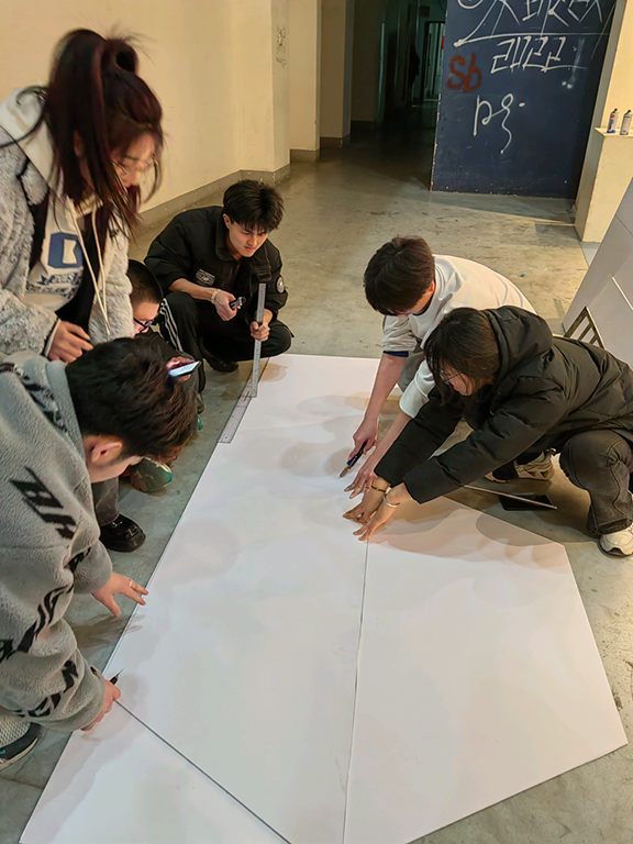 志愿者们结合自身专业优势,围绕“元宇宙”进行策划和创作,并准备好亚克力板与镭射纸等材料。
