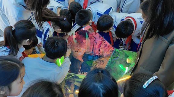 模型搭建完毕以后,志愿者代表向小学生们讲解了模型本身所代表的含义。制作元宇宙星球的目的是希望小朋友们更好地理解抽象科技的概念,展开想象的翅膀,大胆尝试新鲜事物,在成长路上追寻自由、勇于探索、积极创新。