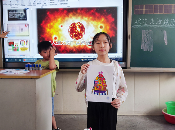 在主题绘画课堂上,志愿者们以“两弹一星”精神为主题,带领小朋友们一起描绘“核”的世界,感悟艺术与科学的魅力。在爱国主义教育课堂上,小朋友们学习党史知识,领悟红色文化。