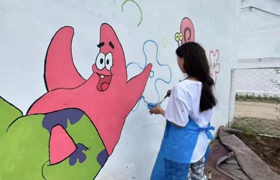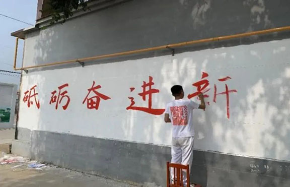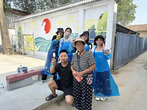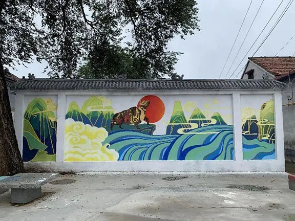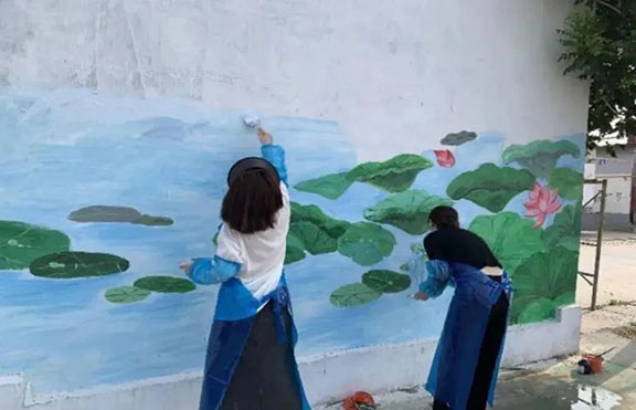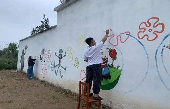 实践团队成员们在牛王村党支部书记王吉刚的带领下实地勘察制定墙绘方案,按设计稿在墙体打底稿、涂底色。在团队成员的共同努力下,结合专业所长,以牛王村村文化底蕴及历史背景为支撑,不断发挥想象力和创造力,呈现一幅幅精美的画面,使整个村庄面貌焕然一新,原本美丽的村庄更添韵味,成为提升乡村文化内涵的新亮点,团队成员用实际行动为乡村振兴贡献力量。