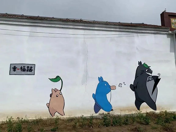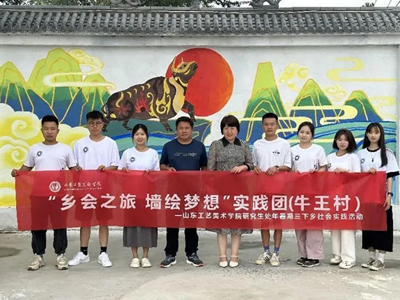 从一开始抱怨天气炎热到后来苦中作乐;从一点一点的临摹涂鸦到后来的自我发挥,墙绘的魅力在一天天的工作中展现出来。“我好想留在这里生活,虽然中午太阳大点,但是气候真的太舒服了!”同学们发自心的喜欢正是对牛王村最好的认可,村长村民欣慰的笑容也是对小分队工作最好的褒扬。助力美好乡村建设,是每一个青年应当肩负的责任,山工艺学子在这个机遇上,也应当付起相应的努力。每面墙绘都凝聚了研究生对牛王村村文化的理解和寄托,不仅丰富了乡村文化生活,也扮靓了乡村环境,形成了颇具特色的文化景观,让村民可以感受到家乡的另一番景色。经过四天的精雕细琢,济阳区牛王村手绘的墙面终于完成了,虽然同学们的脸上、衣服上不免沾染了一些颜料,当看到自己辛勤劳动付出换来的成果,都感到非常欣慰。