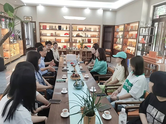 座谈过程中,调研团成员详细了解大明湖发展历史、相关传说,同时对大明湖人文景观和历代主要文人及有关大明湖的主要作品有了全新的认识。座谈结束后,在工作人员陪同下,调研团队走进了被誉为“江北第一楼”的超然楼,超然楼上下共七层,铜瓦、铜栏、铜门、铜柱,有“超然铜瓦金”之说,是一座拥有几百年历史的名楼。楼内展品丰富,包括高达8米的“江北第一木雕”、传承近百年的“万马奔腾”,以及上世纪五六十年代山东书画界领袖人物的真迹和极其珍贵的古老拓片。超然楼不仅气势宏伟、灯火绚烂,更是承载着济南的泉城底蕴。