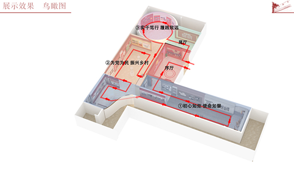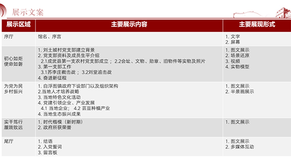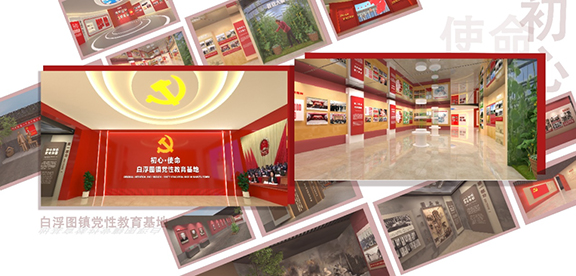 从场地的勘测和规划到展馆主题和名称的确定,从主体色调的搭配到展馆材质的选择,从多个方案的确定到每一处细节的落实,由序厅至尾厅,为让红色血脉代代相传,除去每日例会,师生团队与相关领导共开展线上线下九次研讨会,全员、全方面、全过程抓大局、抓细节、抓落实。在通过线下全面调研、线上全面搜索当地党史、镇史后,团队成员详细梳理相关资料、策划文字内容、确定设计方案、不断优化展厅设计效果。团队始终坚持以红色主题调研和人民群众现实需求为基础,亲身体验革命圣地文化传统和风土人情,提取具有代表性、有教育意义、有时代特征的元素进行设计,发挥专业优势和特色,用专业作品讲述红色故事,助力党建文化发展和乡村振兴。