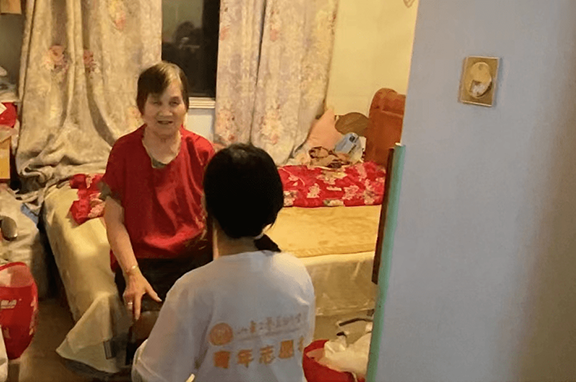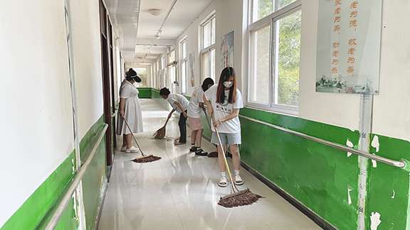 实践第五天,“花儿朵朵”实践团在与老人家们建立了信任后,有序进入房间打扫卫生,跟他们聊家常,拉近与老人之间的距离。