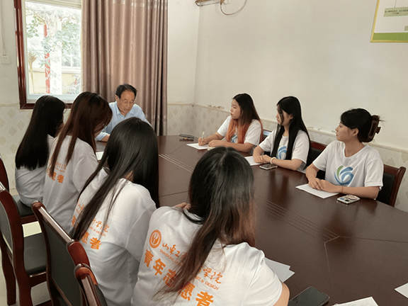 实践第一天,“花儿朵朵”实践团同菏泽市旧城中心敬老院的吴院长进行座谈。吴院长向志愿者们介绍了敬老院的相关情况,如家庭化管理、传统的养老院管理模式、专业的护理服务等知识,为团队开展实践活动奠定良好基础。