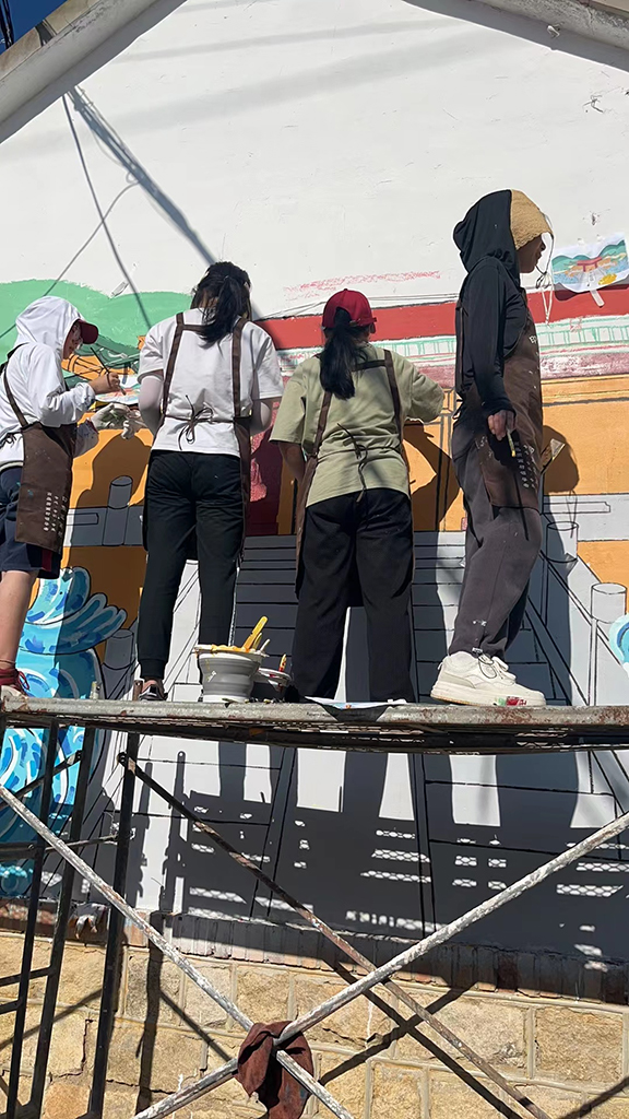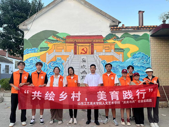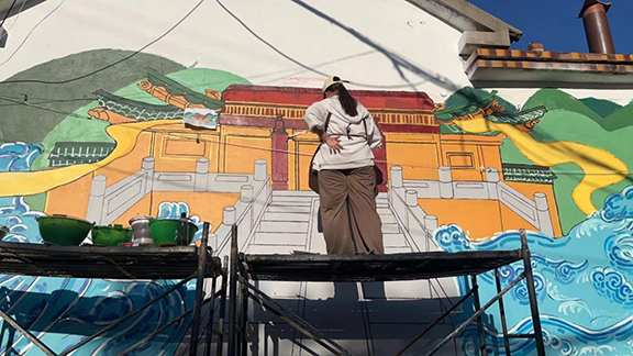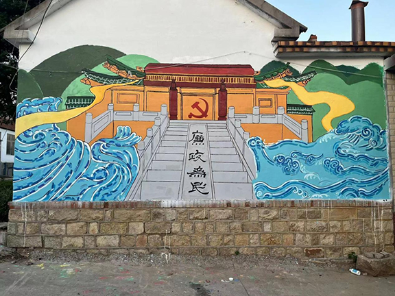 在绘制前期,美术史论教研室邵艳芬、赵文静两位老师对乡村文化墙进行了指导,邵艳芬老师作为校地共建科技挂职干部,现挂职于长清区万德街道,邵老师结合万德公共文化的资源和特色进行了专题指导。赵文静老师结合专业技法课程着重讲解了墙画的作画特殊性。绘制过程中,同学们对于自己的专业知识和造型能力也有了更加深刻的了解。