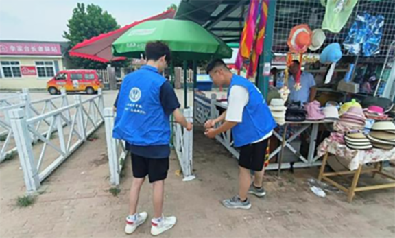 考察完红色文化,成员们在旅游景区内进行实地调研,针对游客、商家、环卫工人和村委管理人员进行采访,了解他们对于当地旅游业发展的意见和建议。