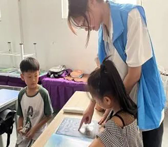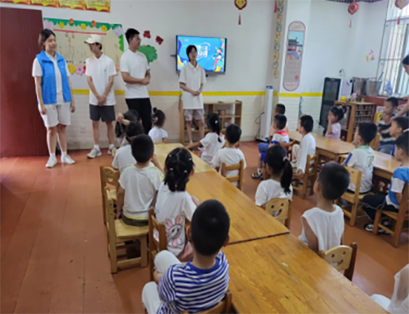 7月15日,蒲公英志愿宣讲团来到泰安司家庄幼儿园,陪伴孩子们完成了一系列创意活动,志愿者们为小朋友们讲述党领导下的核事业发展历程,并发挥自身的专业优势,结合“两弹一星”精神,激发孩子们的想象力与创造力,将自己对中国国防“核”事业的理解以绘画的形式表达出来。在欢声笑语中给小朋友们宣传科学知识,培养孩子们的创新意识。