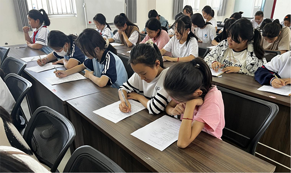 (7岁-12岁同学们正在填写生理健康知识问卷调查)