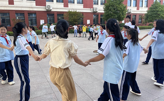 (队员们与学校的老师们以及峄城区卫健局的志愿者们合影)