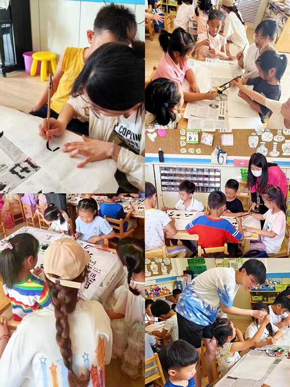 为响应校团委开展社会实践,弘扬中华优秀传统文化以助力乡村振兴的号召。造型艺术学院“艺铸童心翰墨书法小分队”于7月6日,在朱员老师的指导下,一行8人以“文化探寻树自信,争做时代传唱人”为主题,来到山东女子学院附属幼儿园开展美育课堂。