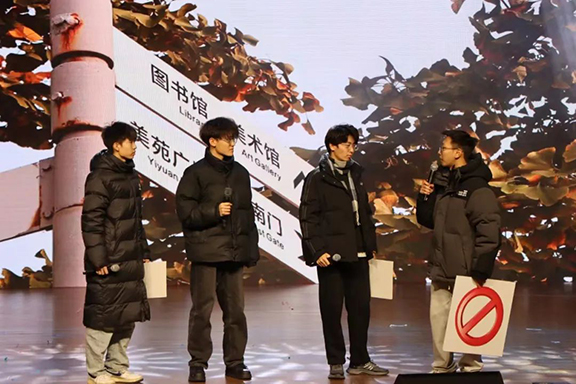 经评委现场打分,视觉传达设计学院多人情景剧《水墨兰亭》荣获本次活动最佳创意奖,学生工作部部长张振羽为视觉传达设计学院团队颁奖。