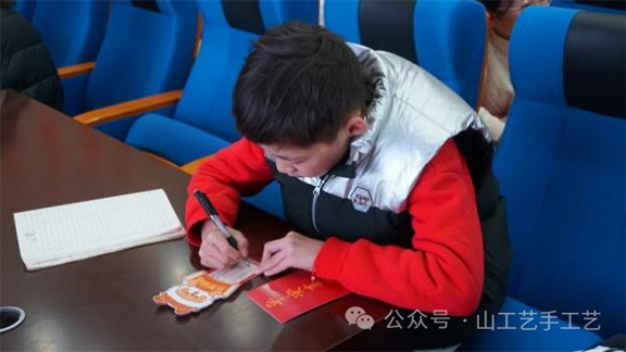 课后,志愿者与同学们进行了“新年贺卡送祝福”活动。