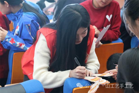 活动前期,志愿者精心制作了新年贺卡和极具趣味性的课件,让同学们通过多种形式感受山水画的魅力。