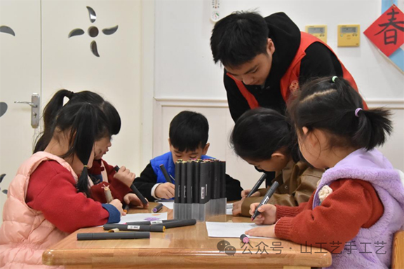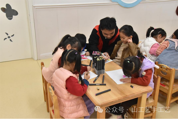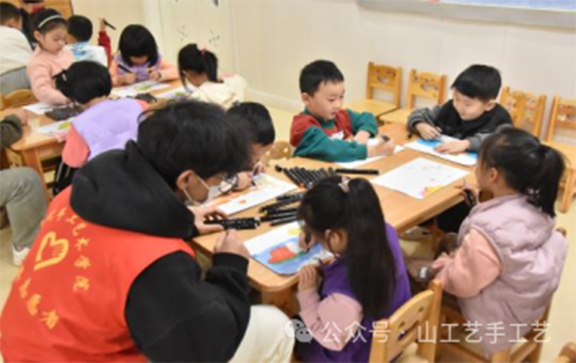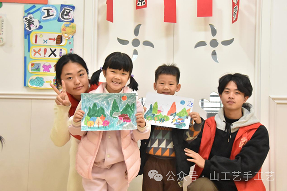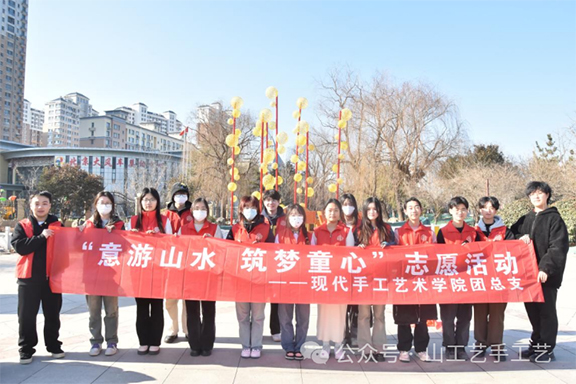现代手工艺术学院“美美与共”志愿服务队前往大风车幼儿园开展“意游山水 筑梦童心”志愿活动。