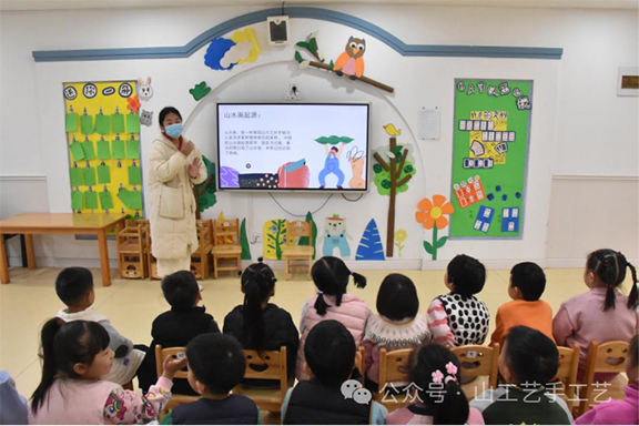 志愿服务过程中,志愿者发挥专业优势,以图片、PPT、视频等形式讲解了经典山水画作品,带领小朋友们领会了中国山水画意境之美。