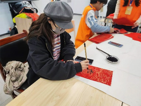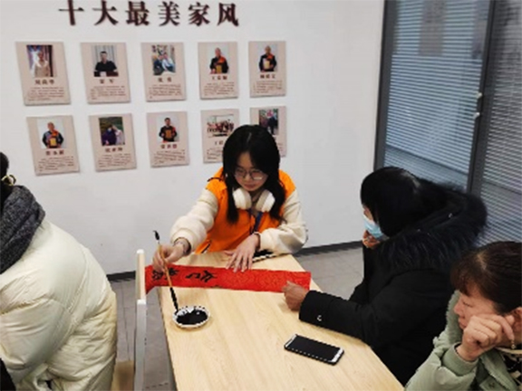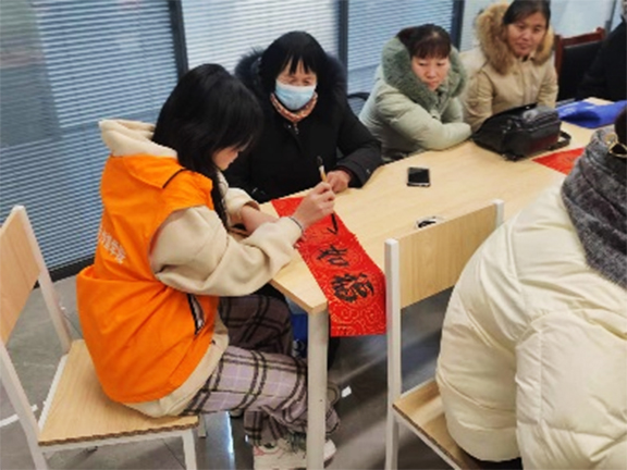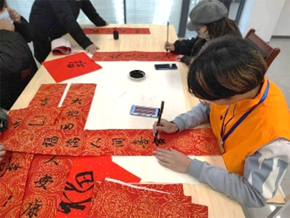 活动当日,满天星志愿者们携带事先准备的红纸、墨汁及书写工具,在街道社区中心驻足并向居民们进行问候。随后,志愿者们便开展写春联的活动,社区居民们也积极的参与进来,他们用笔尖挥洒出精美的字迹,为社区写下了吉祥春联和新年祝福语。从“家和万事兴”到“岁岁平安”,每一副春联春联都承载着大家对来年的美好期许。“兔随冬去留春意,龙伴春来壮画图”、“万事如意鸿运开。金龙贺岁喜临门”,这一句句祝福语不仅彰显了活动的主题,也表达了志愿者们的初心和由衷的祝福。