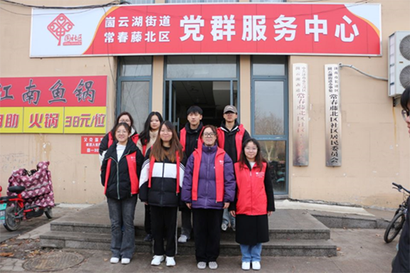 (图为迎新送福社会实践队在社区党群服务中心合影)